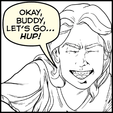 Okay, buddy, let’s go…hup!