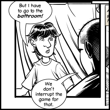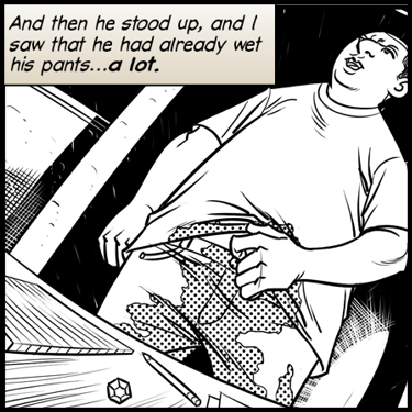 PANEL SIX: PAUL stands up to reveal his soaked pants.