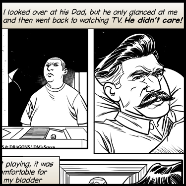 PANEL FIVE: MR. STEPANOV seems to be speaking intimidatingly to MARK, like a KGB agent terrorizing a snitch.