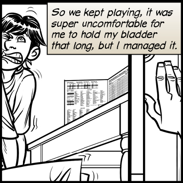 So we kept playing, it was super uncomfortable for me to hold my bladder that long, but I managed it.