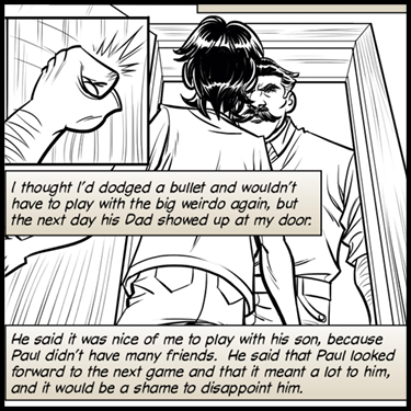He said it was nice of me to play with his son, because Paul didn’t have many friends. He said that Paul looked forward to the next game and that it meant a lot to him, and it would be a shame to disappoint him.