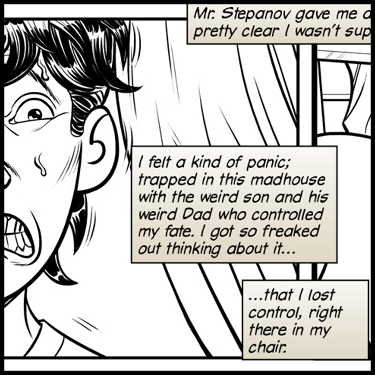 I felt a kind of panic; trapped in this madhouse with the weird son and his weird Dad who controlled my fate. I got so freaked out thinking about it…