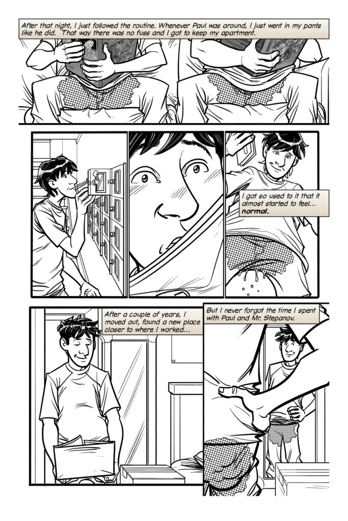 After that, I just followed the routine. Whenever Paul was around, I just went in my pants like he did. That way there was no fuss and I got to keep my apartment.