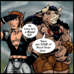 PANEL FOUR: TREYU is folding his arms across his chest and looking smug. KONNOR’s eyes are wide as he sees this new elf. Because, now that the camera is showing SYNCHALLA from the knees up, we can see that he’s MESSED HIS PANTS.
